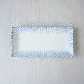 古典柄をモダンに描くそうた窯の長角皿。焼魚もしっかりのせられるサイズ感になっています。シンプルな十草柄は手描きの良さを味わえます。
